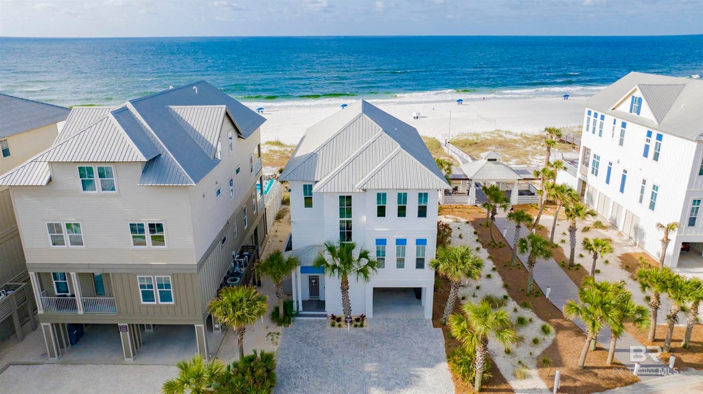 Step into unmatched luxury with this direct Gulf-front estate located in an exclusive gated community along the Alabama coastline. Built to Gold Fortified standards, this 5-bedroom, 5.5-bath home offers the perfect blend of elegance, strength, and serenity.Professionally furnished and decorated, this coastal masterpiece sleeps 10–12 guests comfortably. The home has never been rented and is in meticulous condition, though rental projections reach up to $239,000 annually for those seeking investment potential.Interior features include: Oversized master suite featuring a private living area with a sofa, minifridge, and coffee bar, ideal for morning quiet time or evening wind-downs. Private master balcony with unobstructed views of the sugar-white sands and turquoise waters. Massive walk-in closet, Spa-like master bath with his and hers vanities, a huge walk-in tile shower, and elegant finishes throughout. Antique heart pine flooring, Sonos sound system with individual room controls, Elevator access to all levels, Quartz countertops, Laundry rooms on multiple levels. Outdoor living includes: Private heated gunite pool, Expansive Trex decking on the back patio — perfect for lounging, grilling, or enjoying Gulf sunsets. Fire pit, large commercial ice maker, gas grill, gated storage for all the beach toys, paver driveway, and fresh exterior paint (2022), Security cameras for peace of mind. Enjoy private beach access, community pool, and close proximity to shopping and dining. This is coastal living at its finest — a truly turnkey luxury escape. Buyer to verify all information during due diligence.